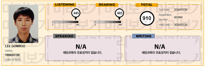 이건우 4주 수강 후 910점 달성!!!