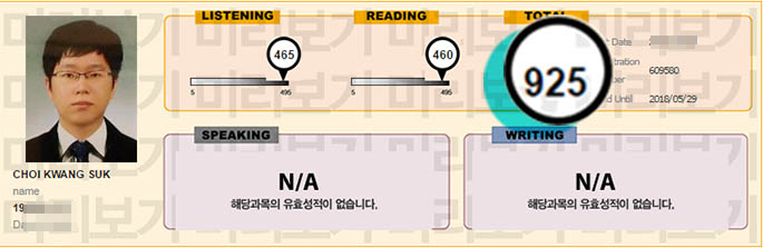 ▶ 최광석 925점(2개월 수강)