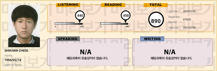 신민철 560점에서, 5주 수강 후 890점 달성!